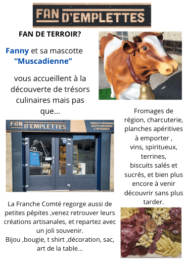 Fan d'emplettes est une boutique spécialisée dans la vente de produits du terroir et de créations artisanales 100% franc-comtoises. Située dans le département du jura ,l' entreprise met en avant les richesses culinaires et artisanales de notre région en proposant une large gamme de produits locaux de qualité. Fanny collabore avec des producteurs et des artisans locaux pour offrir à ses clients des produits authentiques et savoureux. Sa priorité est de promouvoir le savoir-faire et le patrimoine du terroir en proposant des produits uniques et de qualités, dans un univers chaleureux et agréable.